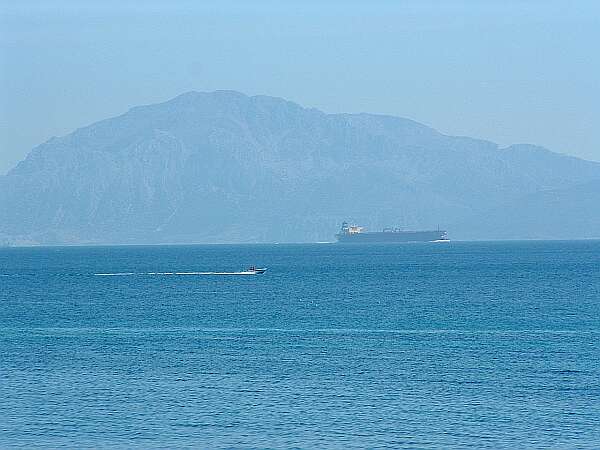 van de straat van Gibraltar (13 km.) goed zien. Een drukke scheepsvaart tussen de Atlantische Oceaan en de Middenlandse