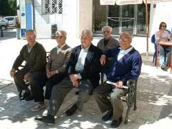 Is er een beter plekje om het nieuws te horen als midden in het dorp op een bankje in de schaduw? Loja |