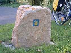Jakobsschelp, in Trier. De weg naar Santiage de Compostela. |