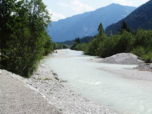 4 Km. Nördlich in Wallgau biege ich rechts ab und fahre die Isar entlang. Es ist eine Mautstrasse d.h. fast keine Autos. (4 Euro für Autos)