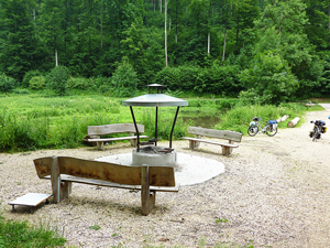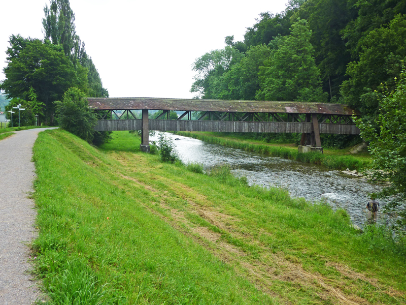 In Sulz bei der Waldhornbrücke machen wir unsere erste Kaffee-Pause. Hier ist das Flüsschen schon zum