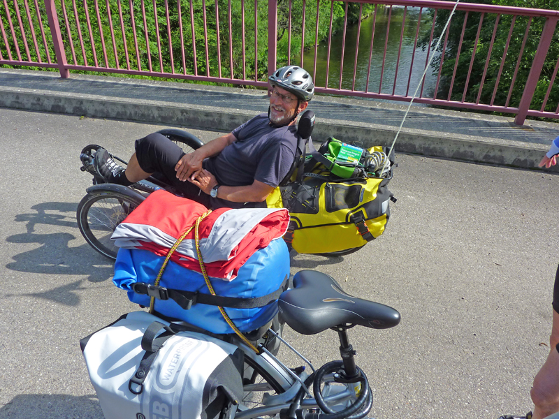 noch ein Schweizer mit Liege-Velo hinzu und es wird diskutiert über Reisen und Velos.