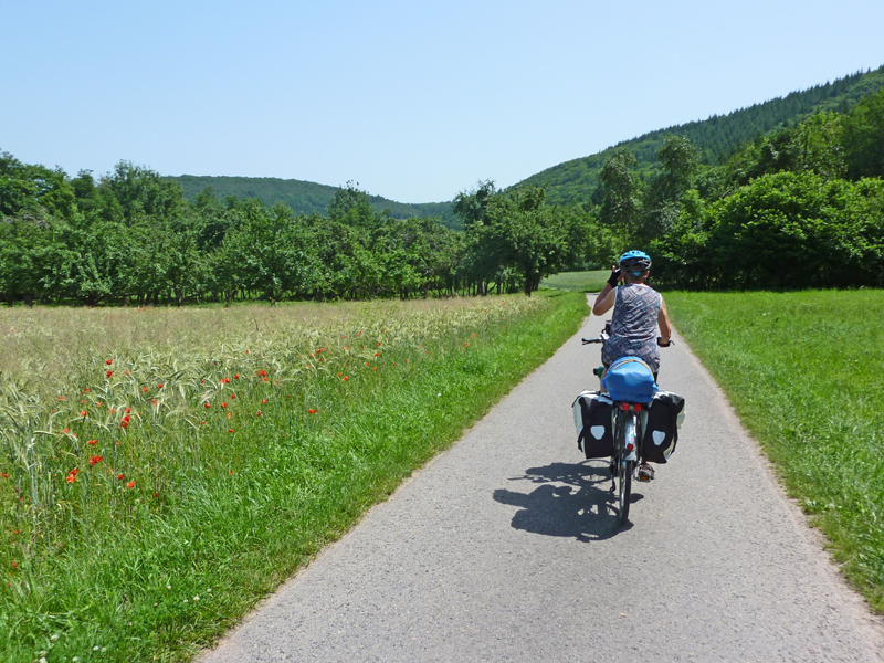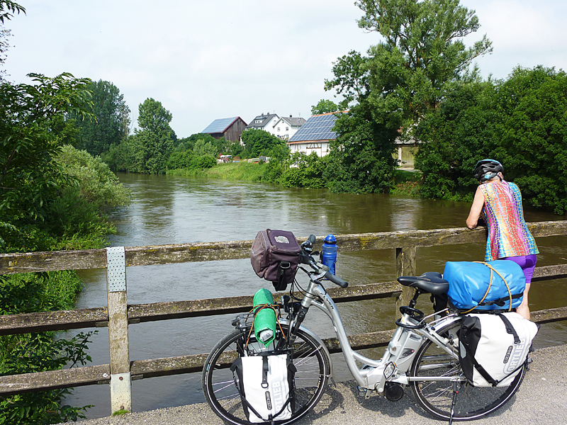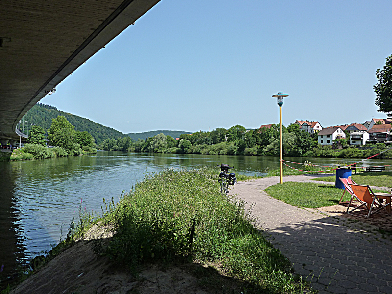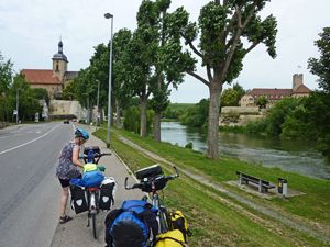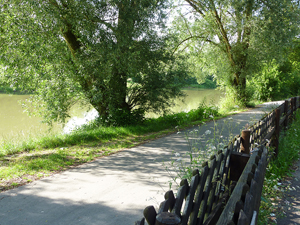 Der Donauradweg in Sigmaringen liegt zwischen dem Fluss und dem Campingplatz, wir können morgen gleich von