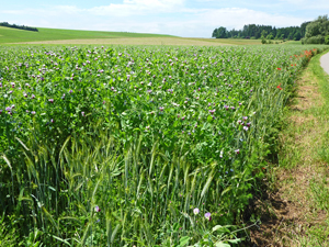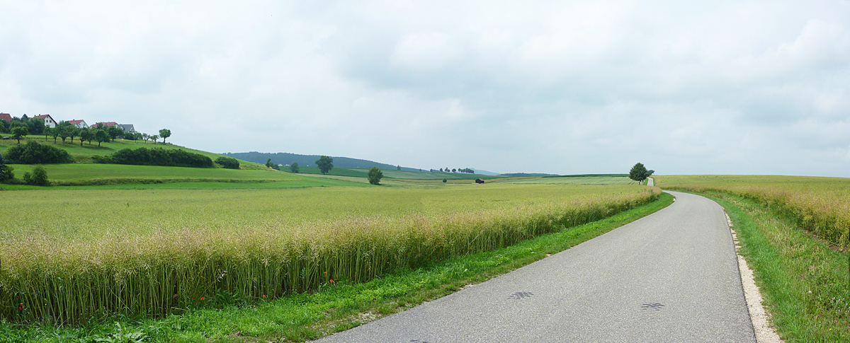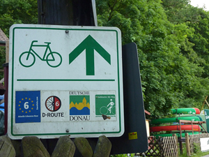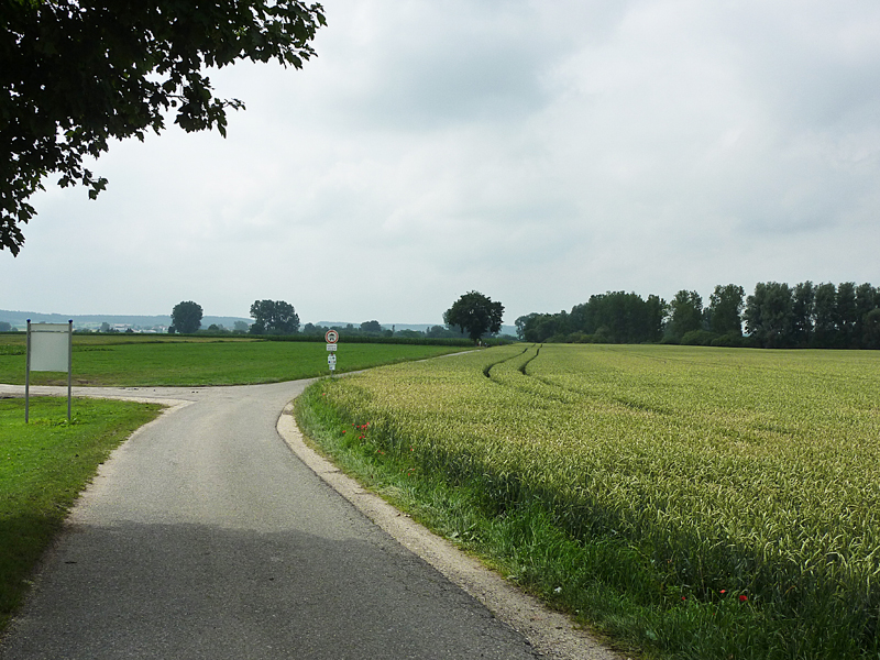 Wir fahren entlang vieler Kornfelder immer schön dem Donau Radzeichen folgend |