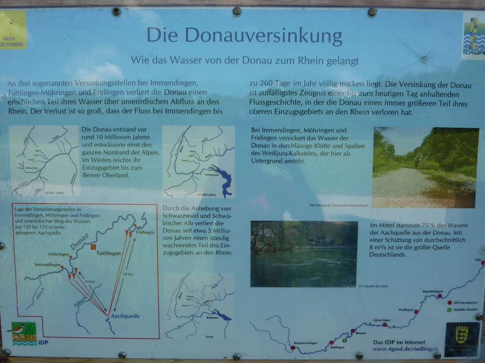 Man hat das Wasser gefärbt und siehe da, das gefärbte Donauwasser findet sich wieder im Aachquellgebiet