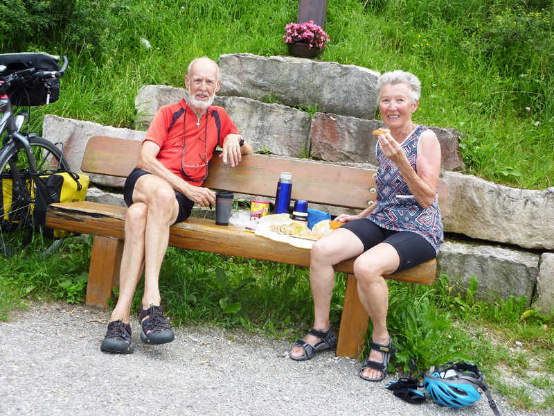 Auf einer dieser Abfahrten begegnen wir einem älteren Radfahrer. Es gibt wieder Radler-Latein und er sagt,