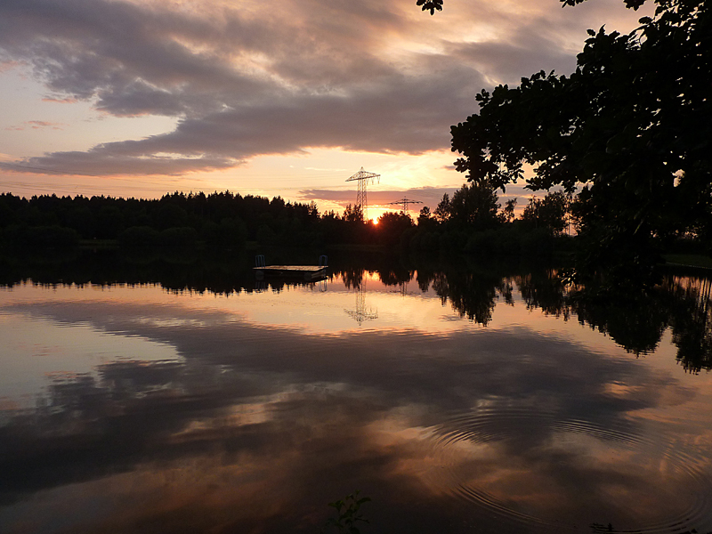 Wir schlagen unser Zelt in Riedsee bei Donaueschingen auf. Es war ein schöner sonniger Tag