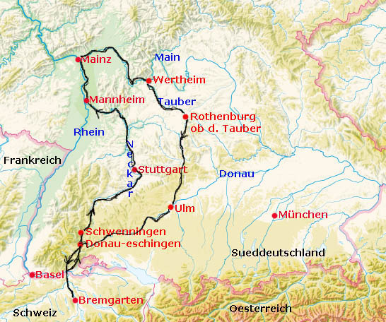 Reuss, Aare (ch) Wutach, Neckar, Rhein, Main, Tauber, Jagst, Donau, Steina.