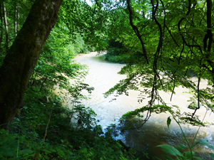 wird enger und der Fluss schlängelt sich in vielen Kurven.