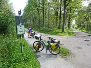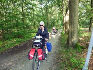 een goed ontbijt afscheid van de gastvrouw. We rijden + 10 km. door bos en hei en komen dan in de buitenwijken