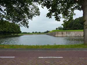 Naarden-vesting wordt door grachten en bastions beschermd |