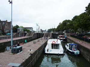 drie naast elkaar gelegen sluizen in de Vecht (Muiden) klik op de foto > |