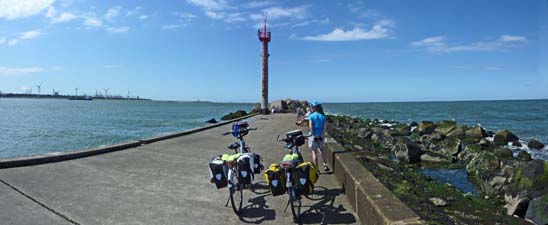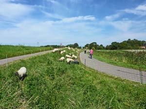 ook zien, dus besluiten we om weer over de dijk terug te fietsen, ondanks de sterke tegenwind.