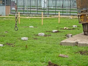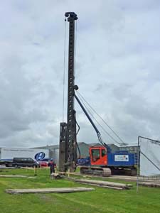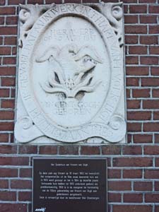 storm dicht. De deuren hangen in 65 reusachtige pijlers van elk 18000 ton en een hoogte van 30 - 38 m. Op de gedenksteen