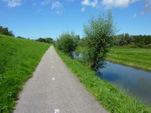 fietspad op de dijk ligt aanzienlijk hoger dan het land |