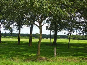 Het landschap is veranderd van weidse weilanden, koeien en slootjes in bossen op een heuvelachtig terrein.
