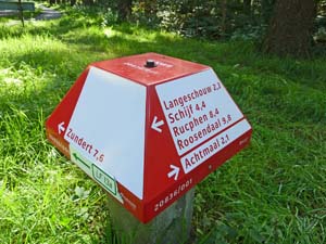 Door een wegomleiding dicht bij Austerlitz missen we de routebordjes, maar op de zg. "paddenstoelen"