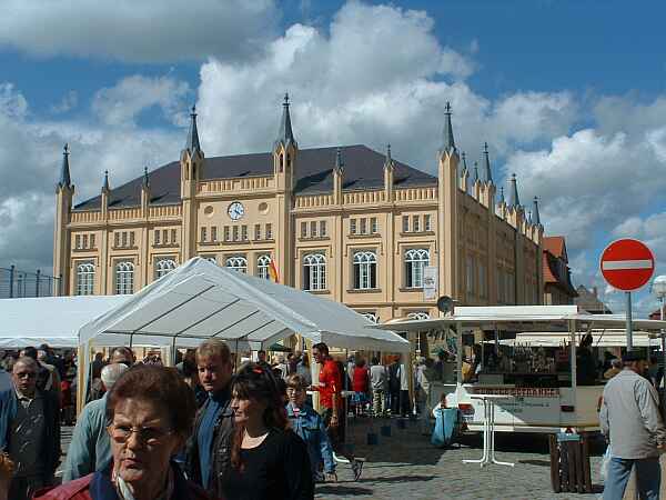 De jeugdherberg van Güstrow is samengevoegd met een sportcentrum en ligt buiten de stad. Voor het avondeten moesten we dus terug naar de stad. We bestelden weer een "Ostfriesenteller".