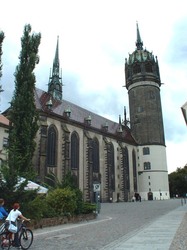 Von Coswig bis zur Lutherstadt- Wittenberg gehr der Radweg entlang der Hauptstrasse. Hier angekommen ist es Zeit für eine Mittagpause und die Stadt anzusehen. Martin Luther (1483-1546) ist hier in der Schlosskirche beerdigt. Dort hat er 1517 seine 95 Thesen an die Pforte geschlagen.