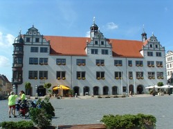 < Schloss Hartenfels und Marktplatz in Torgau ^