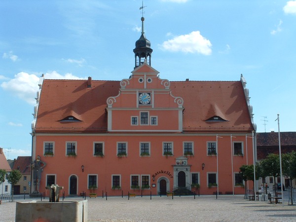 Es geht weiter mit Radwegen abseits der Strasse. In Belgern machen wir wieder Pause. Auf Elbehöhe bei der Fähre führt ein ganz steiler Schotterweg in die Stadt. Dort muss man ein bisschen Schieben sonst drehen die Räder durch. Ein sehr schöner Marktplatz mit einem Renaissance Rathaus, welches neu renoviert aussieht.