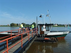 In Aken lassen wir uns mit der Fähre über die Elbe setzten, denn die Vorangemeldete Übernachtung in der Jugendherberge ist auf der anderen Seite des Flusses in Dessau.