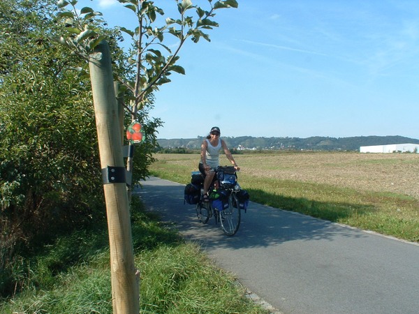 Het is vandaag een van de mooiste dagen van deze rit. Niet alleen omdat de weg bijna overal vlak langs de Elbe voert, maar het weer doet zeker een duit in het zakje. De weg is zeer afwisselend. Bij Seusslitz zijn er zelfs wijnranken aangeplant.