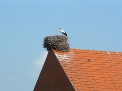 Het is stil tot aan Rühstädt(15 km.), we hebben de straat bijna voor ons alleen. In deze stad vind je bijna geen huis zonder ooievaarsnest, op sommige daken zijn wel 3 of 4 nesten. Een echte ooievaarskolonie.