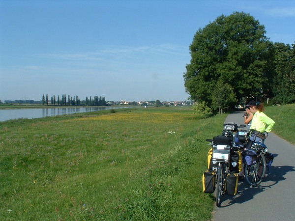 Deze keer volgen we de rivier niet vanaf de bron tot de uitmonding, maar fietsen we in omgekeerde richting , van monding tot de Tsjechiesche grens bij Dresden. Hiervoor hebben we een goede reden: de wind. In Europa waait het in 80-90% van de tijd vanuit het westen. Wij hebben deze keer echter verkeerd gegokt, wij treffen net de andere 20-10%, vooral in het begin van onze reis. Toch mogen we van geluk spreken, van de 14-dagen durende tocht tellen we slechts twee verregende dagen, de rest is uitermate mooi zonnig, zelfs sommige wolkenloze dagen. En dat terwijl het in die zelfde tijd in het Alpengebied noodweer is met overstromingen door over-vloedige regenval.