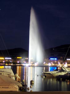 Rückblick auf Genf < Am Abend einen Spatziergang entlang dem See mit den beleuchteten Wahrzeichen. |
