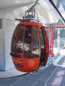 rotierende Gondelbahn der Welt. Sie führt hinauf zum Hochstuckli. Bei solch schönem Wetter stehen die