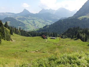 In Broc habe ich eine herrliche Aussicht über das Gruyèrzerland, mit solch
