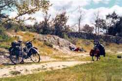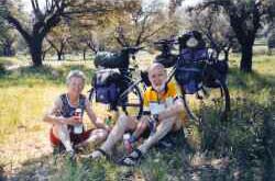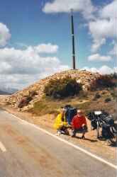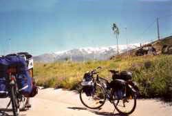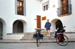21.04.2002 at 08.00 o'clock we entered the MD 87 of the Iberia airline which brought us to Sevilla. With us I mean my sister and I. We have already experienced some beautiful routes together. The evening before, we had brought the luggage and the bikes to the airport Kloten (Zürich). I nearly forgot to let out the air of the tyres, otherwise it would have possibly become catastrophic. Where would we get new tyres in Sevilla on Sunday afternoon?