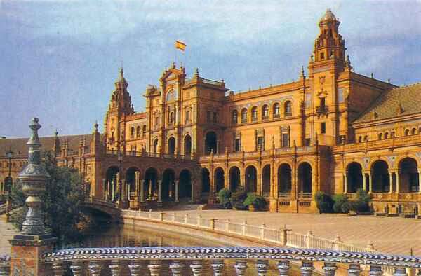 Plaza de España. Under each arch a mosaic is made of "Azulejos"(tiles) where each province represents itself with characteristics of its county |