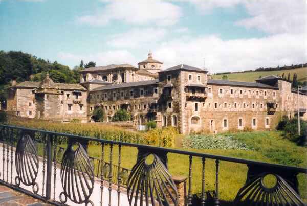 After the run down we came into Samos. There is a huge Benedictine Monastery surrounded by an iron fence decorated with the symbol of the “Camino” a Jacob shell.